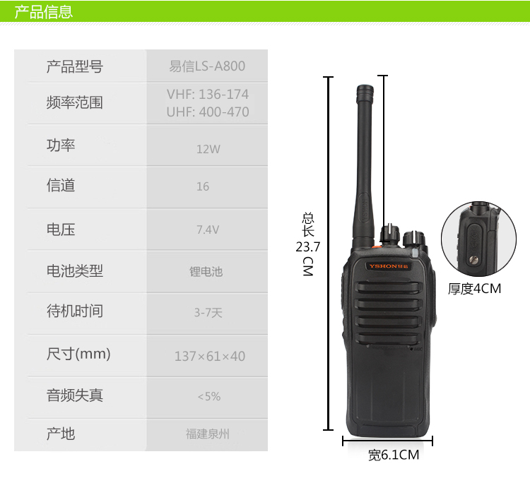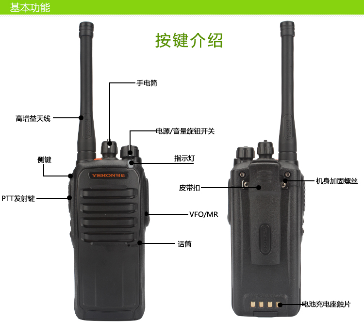 功能强大,音质清晰,通话距离远,性能稳定可靠,已取得美国FCC、CE等多项国际认证外形流畅,符合FCR人体工程学设计,坚固耐用,防尘,防淋,抗摔。