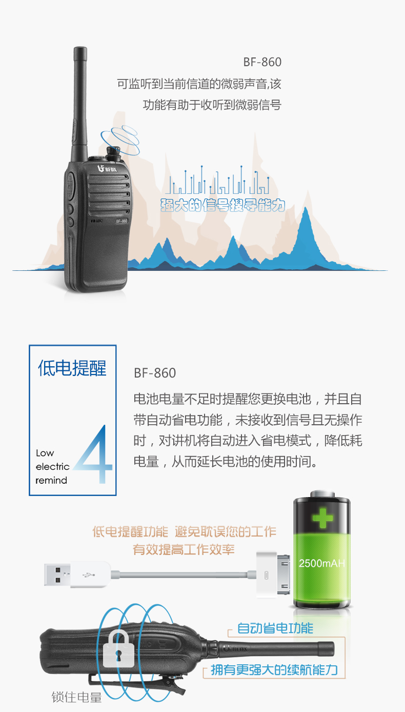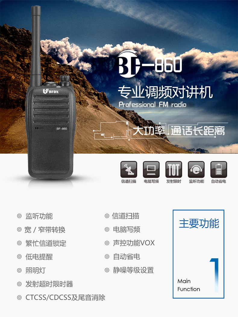 北峰对讲机,VOX声控,LED手电,7W大功率
