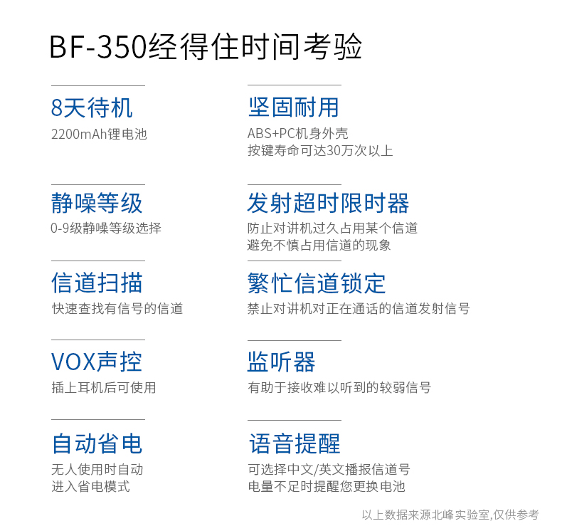 北峰经典对讲机,BF350,耐摔防尘 BFDX VOX声控功能,解放双手束缚,让紧张工作与完美对话两不误