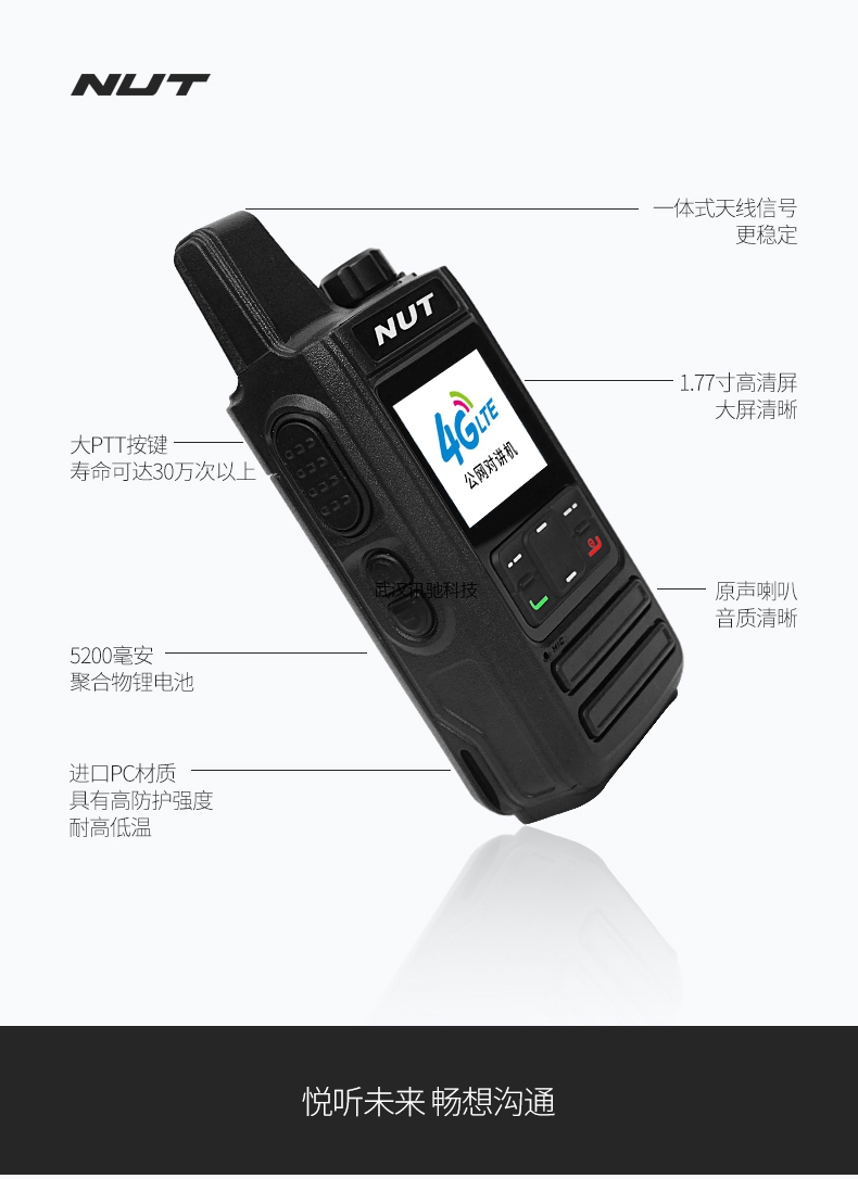NUT九伯通全国对讲机,4G公网插卡对讲机,不限距离通话