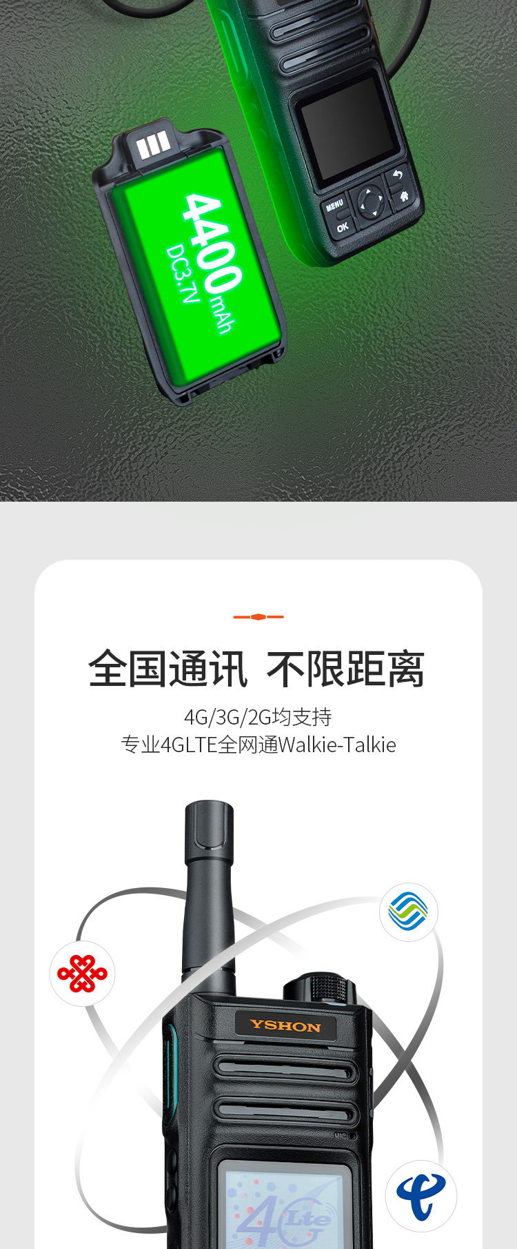 YSHON易信4G公网对讲机,全国对讲机,不限距离,适用于车队物流物业行业,插卡对讲机不限流量,IP54防水