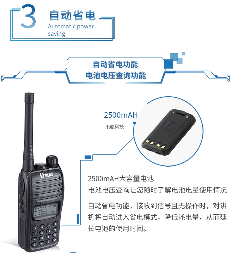 北峰录音对讲机,最大支持32GTF存储卡容量,可连续4681小时超长录音。高清LCD显屏、强光手电