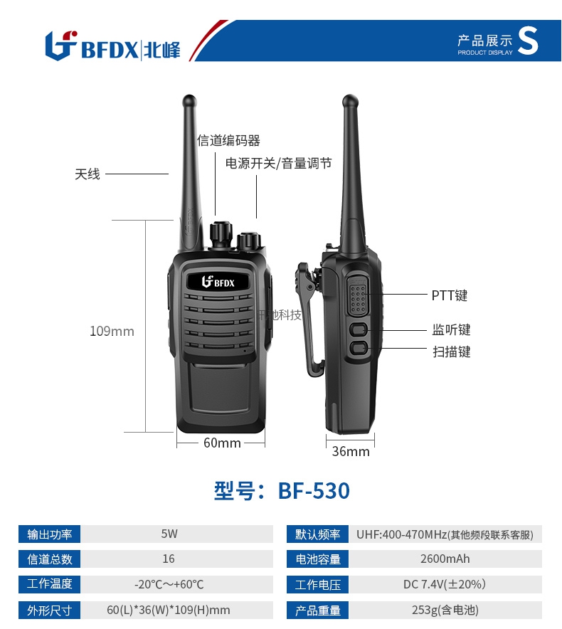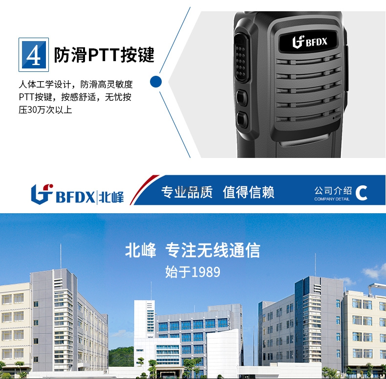 北峰对讲机,高级PC材质,专业机身设计,超强防护,2米抗摔