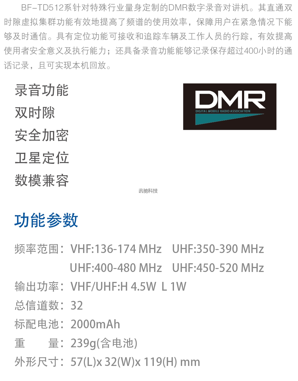 北峰数字对讲机,DMR数字制式,1.8寸彩屏,实时卫星定位,400小时长时录音,多重报警模式,适用于政府机构、建筑工程、林业、铁路等行业