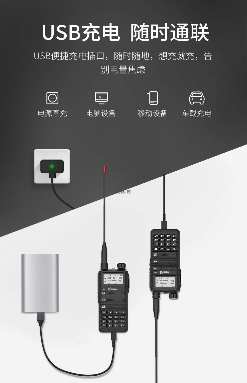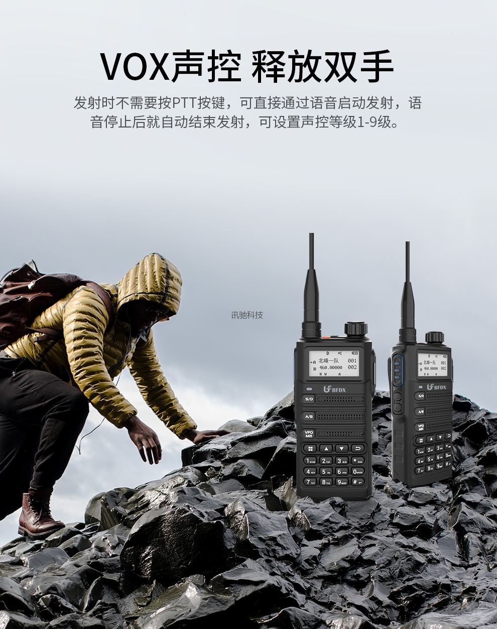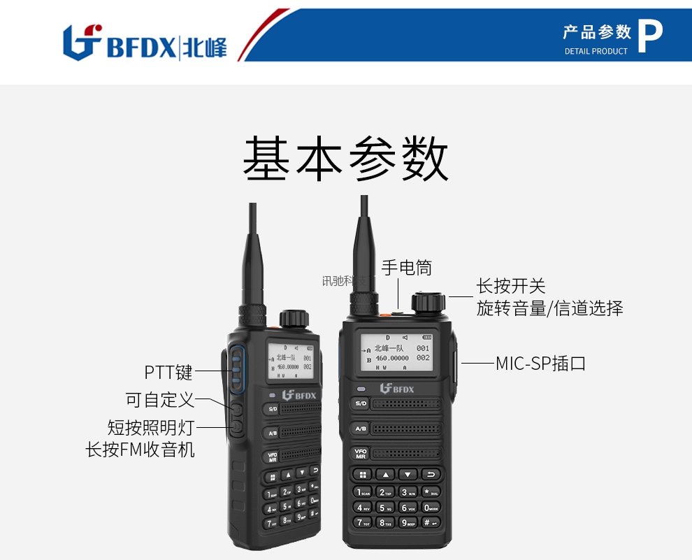北峰对讲机,手动调频,UV双段,一键对频,手电筒