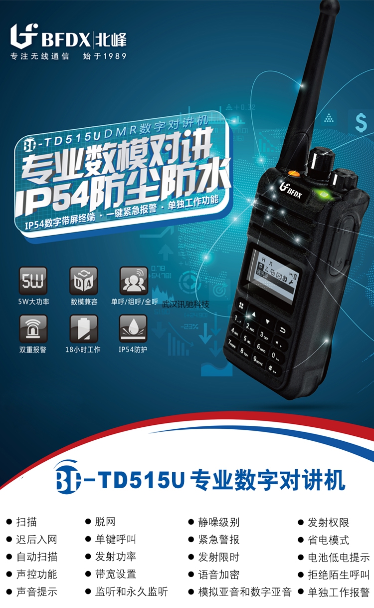 DMR数字制式,防尘防水,高清显示屏,北峰专业数字对讲机