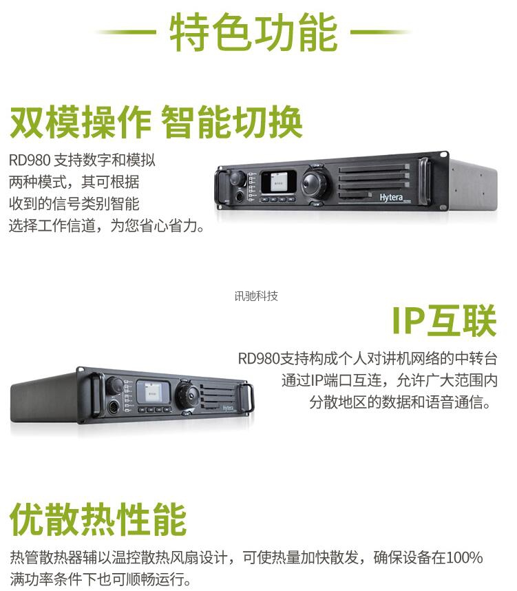 Hytera海能达RD980数字中继台,双模式对讲机信号放大器,采用兼容性更强的通用硬件平台,通过软件升级实现八大系列产品的灵活应用