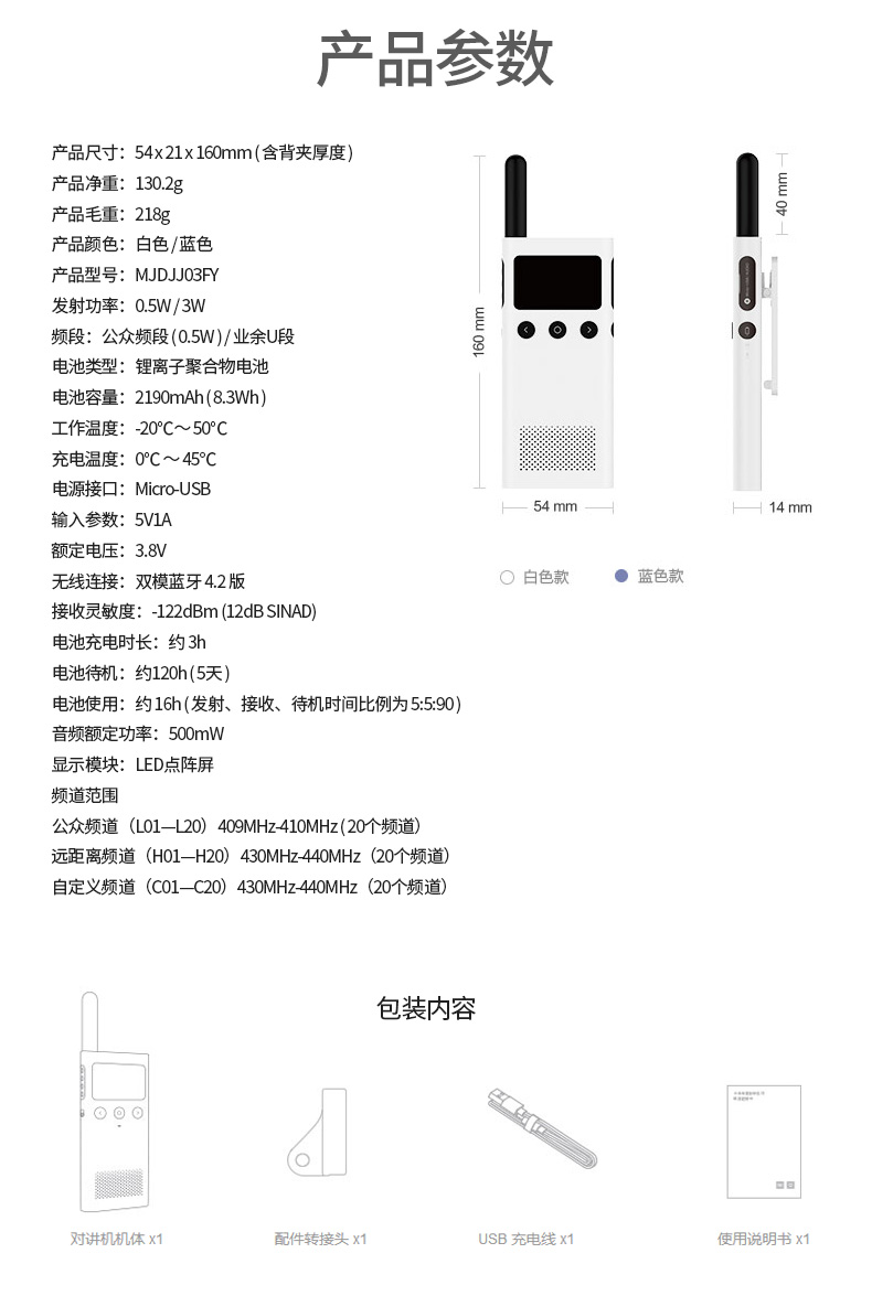 小米对讲机,轻薄机身,位置共享,手机写频,FM收音机