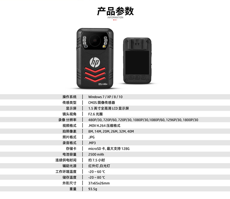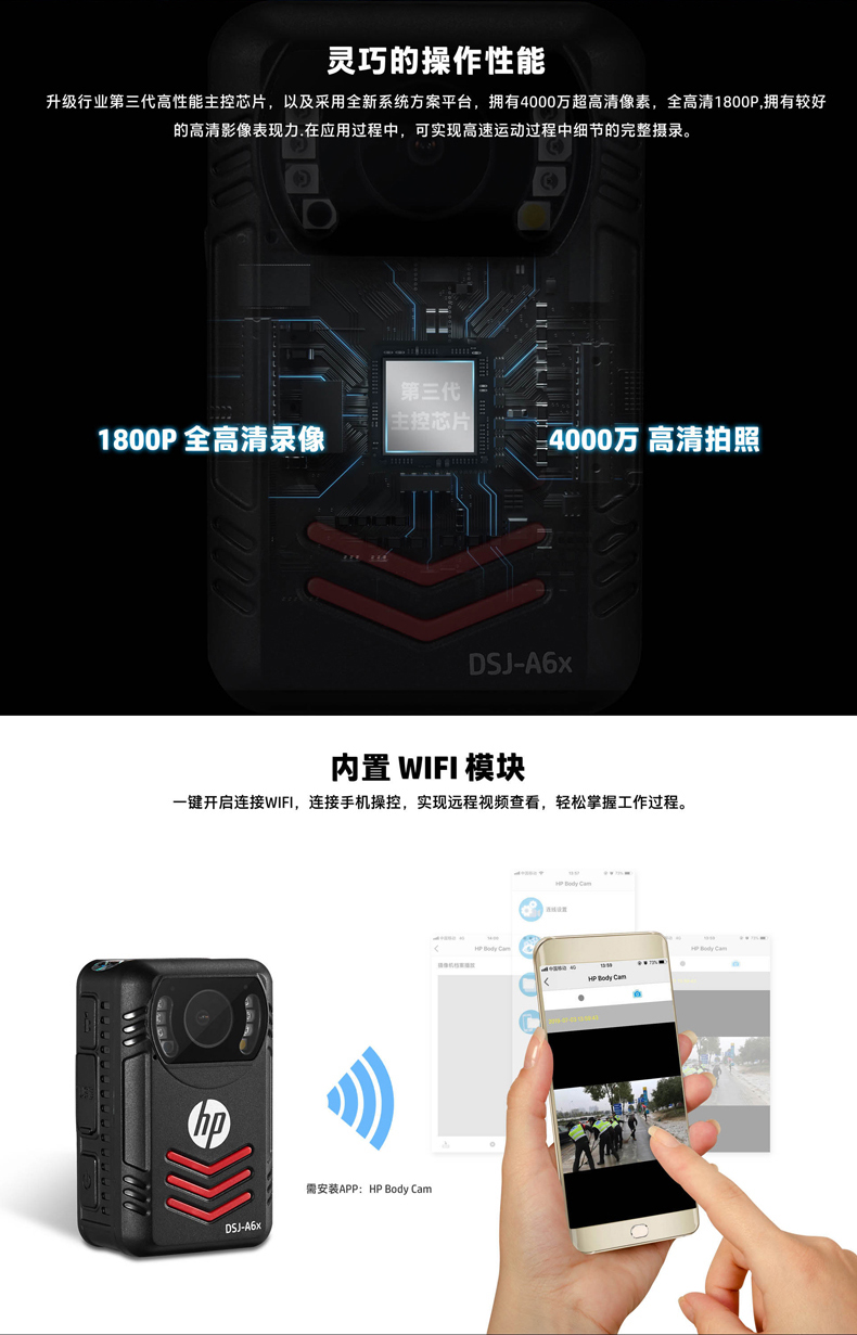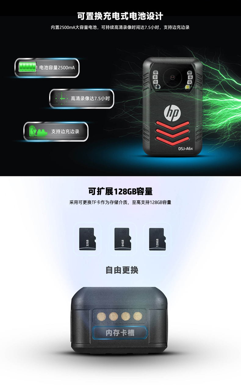 HP惠普执法记录仪,DSJ-A6X高清夜视小型现场随身便携记录器,